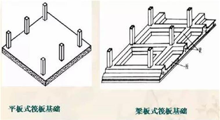 筏板基础:又称筏形基础,由底板、梁等整体组成。筏形基础形象于水中漂流的木筏。井格式基础下又用钢筋混凝土板连成一片,大大地增加了建筑物基础与地基的接触面积。 适用范围:一般用于高层框架、框剪、剪力墙结构,适合于软弱地基和上部荷载比较大的建筑物。是目前采用比较广泛的一种基础形式。 沉降影响:荷载超过地基承载力,筏板基础埋深增加,会弯曲变形,地基不均匀沉降,导致结构裂缝或变形,对建筑物的安全带来严重威胁。
